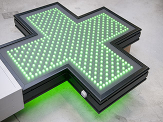 IPSign offre, aux vétérinaires, la possibilité de remplacer leurscroix statiques actuellespar des croix dynamiques. Ellespermettront d'accroitre leursvisibilitéet d'attirer l'attention grâce à des animations attractives (heure, température, animaux...) facilement programmables.